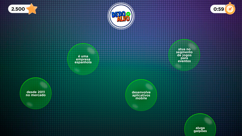 Um jogo que testa o conhecimento e lado competitivo do público. No Dedo ao Alvo os participantes precisam tocar nas respostas verdadeiras antes que desapareçam da tela. Com uma dinâmica acelerada, competitiva e ranking, o clima de disputa toma conta rápido.